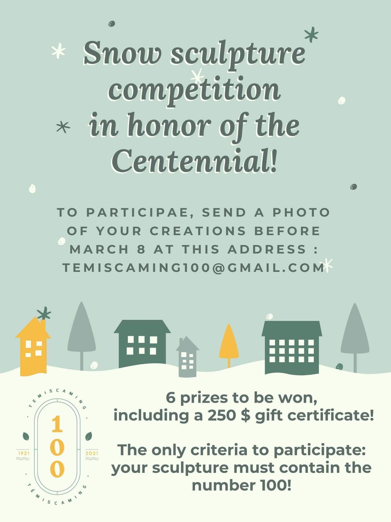 In the winter of 2021, let's decorate Temiscaming with snow or ice sculptures. The only criterion for this challenge is to see the number 100 integrated into your creations!